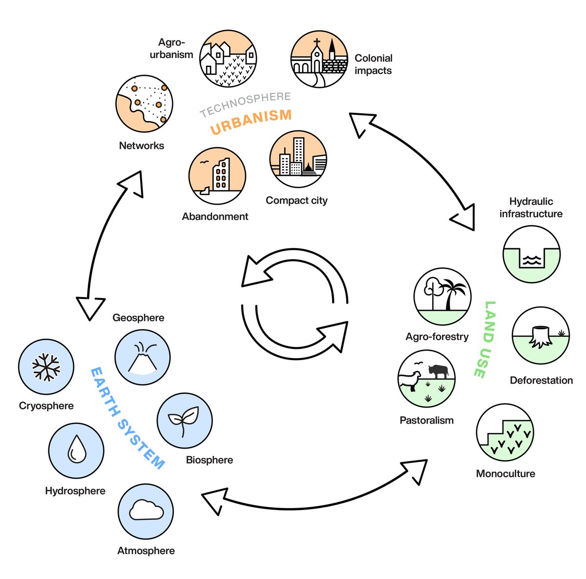 At a recent workshop entitled “Connecting urbanism across time and space” led by urban archaeologists at the Max Planck Institute of Geoanthropology in Jena, Germany, one of the participants offered a definition of the urban as “looking for the edges of built infrastructure”. A number of the presenters used remote sensing methods to reveal traces of past cities through signs of abandoned buildings, water collection and distribution systems, or other cultural artefacts. The workshop organizers were keen to identify the common determinants of urban form that might render archaeological knowledge useful for contemporary concerns with urban resilience, as shown in the figure drawn by Michelle O’Reilly that I have used to illustrate my text. Some contributors were keen to stress how the field of “urban science” might lead to the closer integration of urban research across diverse historical and geographical contexts. There was a recurring emphasis on cities as a particular kind of complex adaptive system that is amenable to advanced forms of modelling, including the application of AI enhanced capacities for the collection, storage, and analysis of data. One participant from a biosciences background explored the social behaviour of insects as a basis from which to study human settlements in terms of behavioural algorithms. In my own presentation on “urban metabolism,” however, I offered a working definition of the city that I had written down while listening to the other presentations. I suggested that “a city denotes a certain kind of cultural and political configuration that is associated with but not necessarily determined by a series of material and topographic parameters.” I highlighted problems with an attempted epistemological elision between the social and biological sciences, and introduced an alternative perspective based on the neo-Marxian concept of metabolic rift as a different kind of analytical schema.